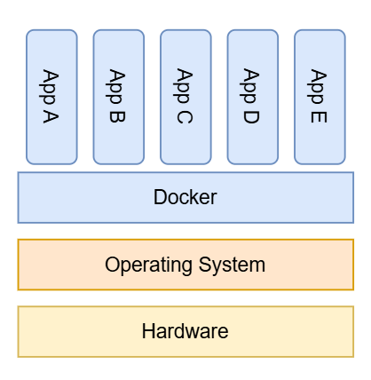 - Containers share a host OS but use Docker Engine to orchestrate.